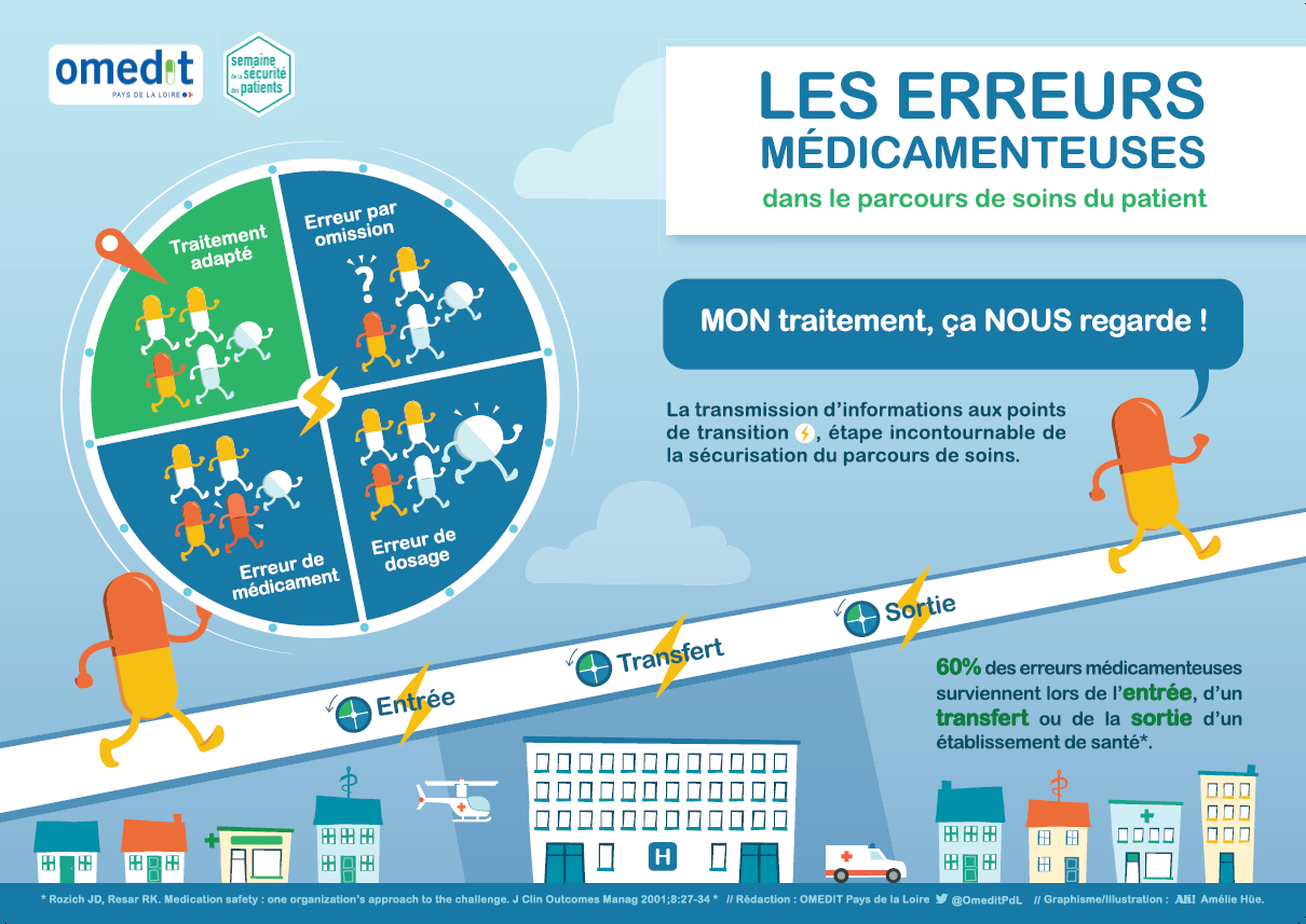- Une affiche de sensibilisation aux erreurs médicamenteuses dans le parcours de soins du patient :