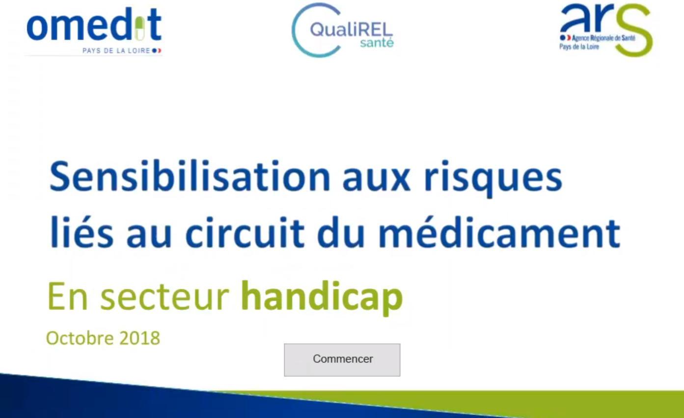 Un groupe de travail régional, composé de professionnels des réseaux qualité, de l’ARS, d’établissements médico-sociaux et de l’OMEDIT Pays de la Loire sur le circuit du médicament en secteur handicap, a été créé en 2012.